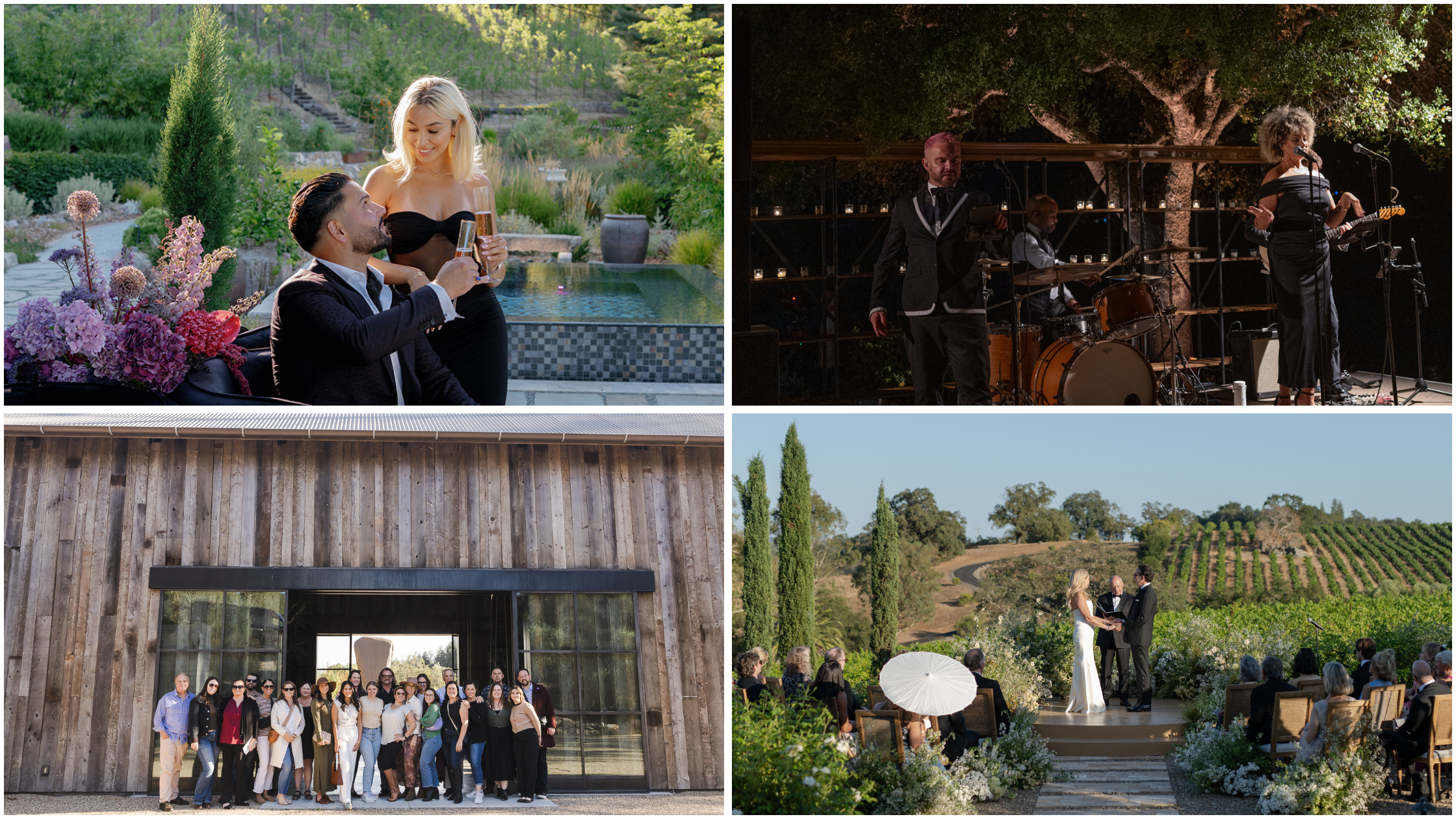 Welcome dinners beneath open skies. Poolside brunches overlooking vineyards. Rehearsal evenings in candlelit courtyards. Fireside after-parties that stretch late into the night. Overnight stays for immediate family and inner circle.